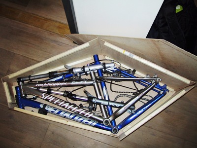 | The bike boxes made it, although they had been prized open at some point and then taped back together. Fortunately nothing was damaged. |