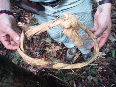 | He showed us how to climb a palm tree. First you make a ring from a certain type of tree bark like this… |
