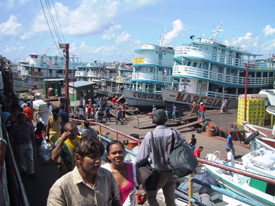 | From Manaus we travelled along the Amazon in a boat to Santarem (a trip which takes 36 hours) in order to pick up a road South to Cuiaba. |