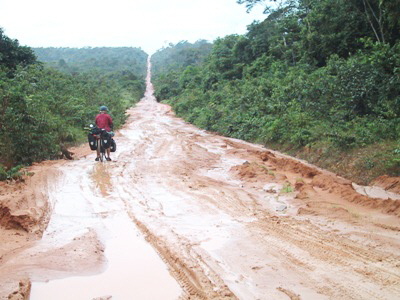 | There were still heavy rains on most days which left the road extremely slippery. We changed our tyres for off road type but progress was still very slow. |