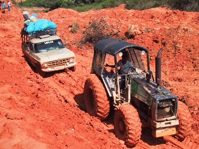 | In the end there was just too much mud. Vehicles had to rely on the services of local farmers who were putting their tractors and caterpillars to an alternative use and towing cars and trucks for high fees. |