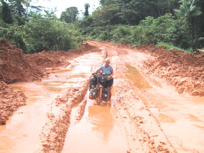 | So after a big send off and several hours without rain, we headed off on foot, stopping every few meters to remove the mud from our wheels. |