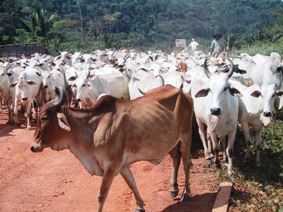 | As we got further south we entered Brazil's cattle country. Herds being moved from one grazing area to another are a frequent cause of traffic jams. |