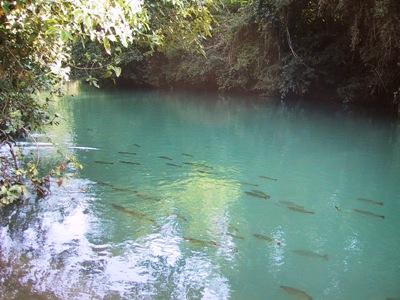 | One of the things that Bonito is famous for is its freshwater rivers which are incredibly clear. We hired some snorkels and wetsuits to have a look. |