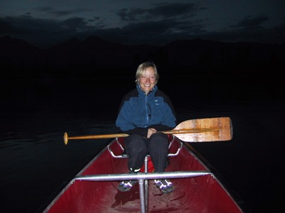 | We hired a canoe from a campsite beside a lake hoping to catch the moose coming down to the waters edge to drink at dusk. We didn’t see any moose but a family of otters entertained us in their attempts to chase us away from their home. |