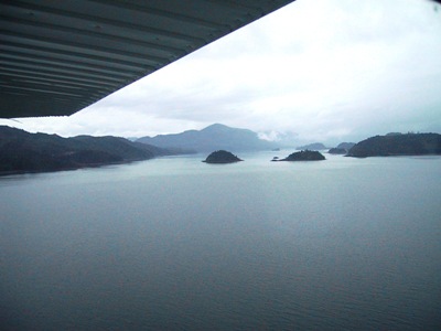 | It was a beautiful morning for a flight. This is the view of surrounding islands and calm waters from the plane. |