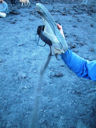 | Volcanic rock makes for tough walking - it's two steps up and one down. It really cuts into your shoes as well. Our cycle shoes weren't really made for this. |