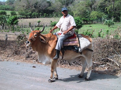 | An unusual mode of transport! Apparently very effective if the bull is trained at a young age. |