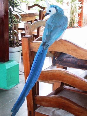 | We spotted these beautiful, noisy white throated magpie jays throughout the Pacific lowlands from Mexico onwards but here on the island they are particularly cheeky and try to steal food from your plate. |