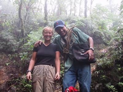 | Beth trekking up Volcan Maderas, one of the volcanoes which make up the Island, with a local guide. |