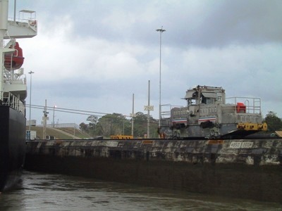 | Bigger ships use these trains which act as mechanical line handlers. |