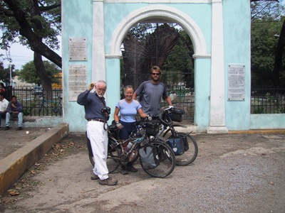 | Having our photo taken for a newspaper in Maracay. We didn’t realise the fame it was going to bring us. Even more people were shouting encouragement from car windows but now they already seem to know where we are going. |