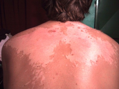| Jeremy’s burned shoulders during the peeling stage. Pretty horrendous. |