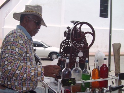 | Flavoured ice is another popular drink. The ice is ground by this machine then you chose your flavour to pour on top. |