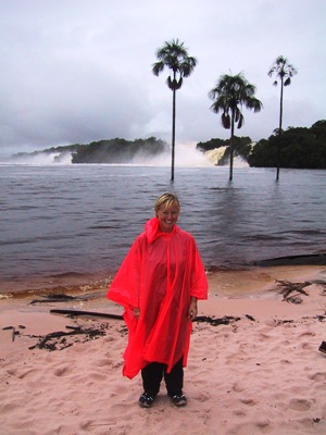 | It was very wet and we had left our waterproofs in Cuidad Bolivar. Luckily we found a shop selling luminous ponchos. They look fantastic too! |