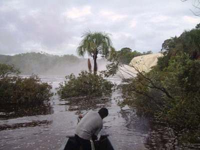 | Our guide, Eduardo, is an indigenous Venezuelan. Traditionally they used these frogs to make poison to use on arrowheads and darts for hunting. He was quick to spot one on route to Sapo Falls. |