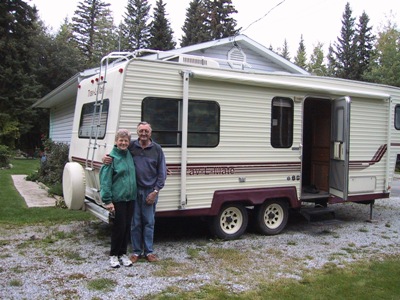 | We met Alf and Jerry near Watson Lake when they were on holiday in their RV. They invited us to stay with them at Vanderhoof and let us sleep inside the RV which we were very excited about having seen so many on the roads. |