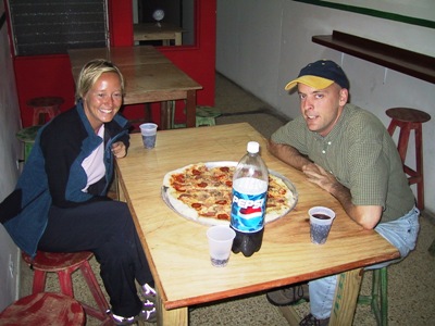 | We left the coast briefly to visit a fellow cyclist, Chris, who is living in San Jose. He took us to the student hangouts for pizza and beer - a welcome change from chicken and rice. |