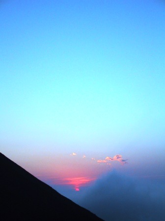 | As 'the boat' ascended above the cloud line the top of the cone came into view. By now there is a strong smell of rotten eggs. |