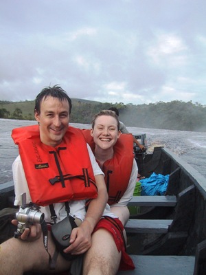 | It was very wet and we had left our waterproofs in Cuidad Bolivar. Luckily we found a shop selling luminous ponchos. They look fantastic too! |